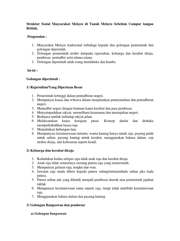 Struktur Sosial Masyarakat Melayu Di Tanah Melayu Sebelum Campur Tangan British Pdf